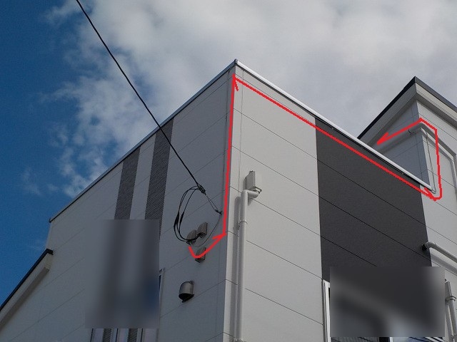 赤丸の位置から3F屋上迄の配線です。