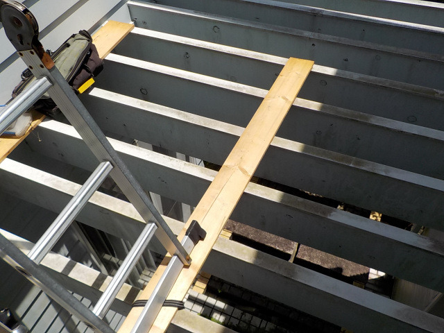 屋根の上経由で建物右端まで
